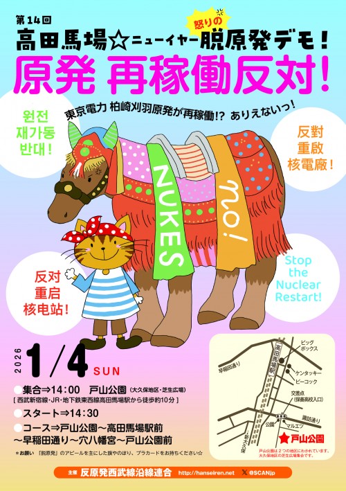 2026年のお正月、高田馬場で「原発再稼働反対!」の怒りの声をあげていきましょう。